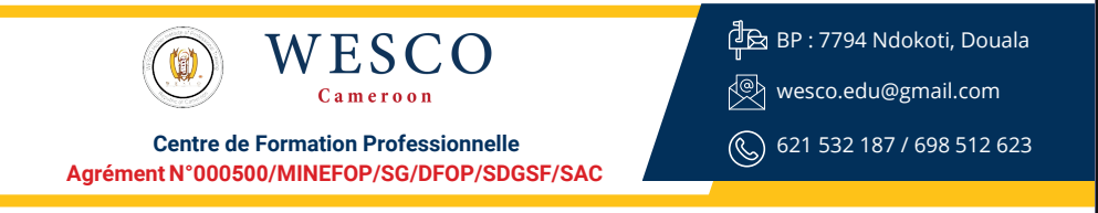 CFP-WESCO is recognized as a leading vocational higher institute in Cameroon, accredited by the Ministry of Employment and Vocational Training. Its mission is to empower learners with practical, career-focused skills that directly respond to the job market